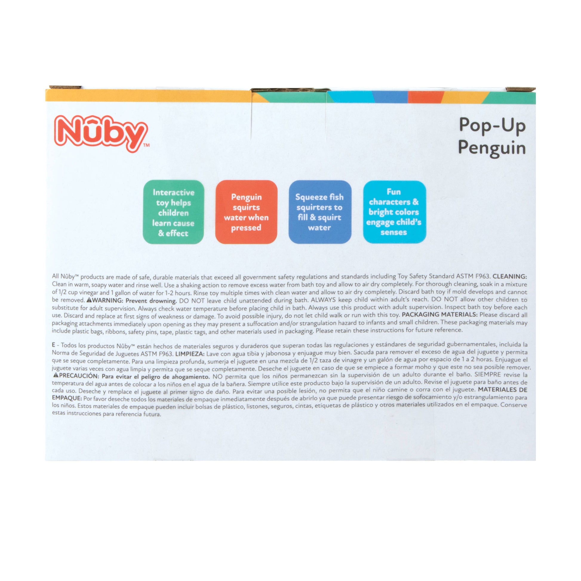 Make bath time an opportunity to grow and learn for your little one with Nuby’s Pop-Up Penguin Bath Toy. Designed to engage your child’s senses and challenge their motor skills, this cheerful penguin and its fish squirter friends are on a mission for fun. Fill the igloo with water and the push the penguin down for waves of fun in the bathtub. The Pop-Up Penguin Bath Toy’s cute characters and moving parts work as interactive elements intended to help build hand-eye coordination and stimulate your child’s senses. Made of BPA-free materials, Nuby’s Pop-Up Penguin Bath Toy is a safe choice for learning fun for your child.