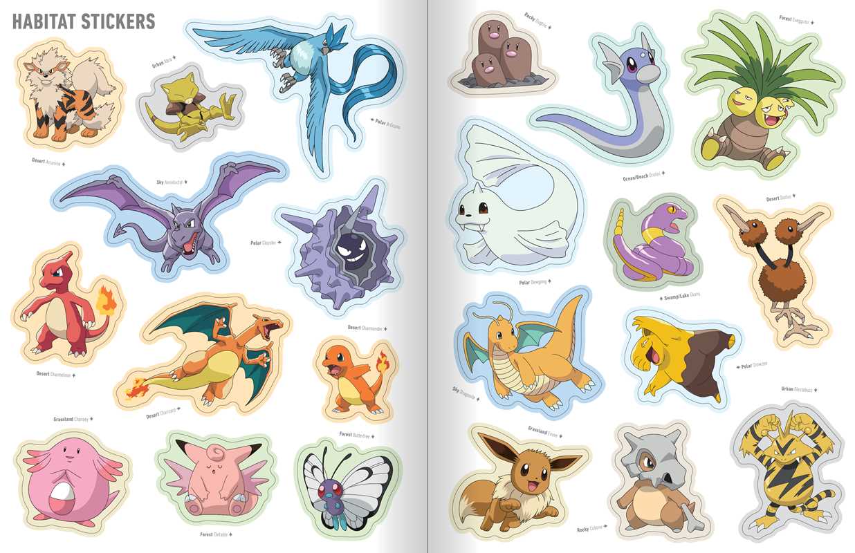 In this sticker book, you’ll find familiar faces from all over the Kanto region, including Bulbasaur, Charmander, and Squirtle; Pikachu and Eevee; and even Gengar and Mew! There are over 600 stickers featuring Pokémon of various types and from different habitats, complete with vital information and fun facts about each of them!