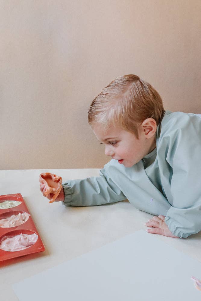 Say goodbye to stained clothes and hello to easy clean up! Our Smock Bibs are here to make your life easier - with the long sleeves, elastic cuffs, two snap closure in the back, a front pocket flap to help catch dropped food, and waterproof material you and your little on will be ready to take on anything! Use during meal times, painting, or for any messy activity.