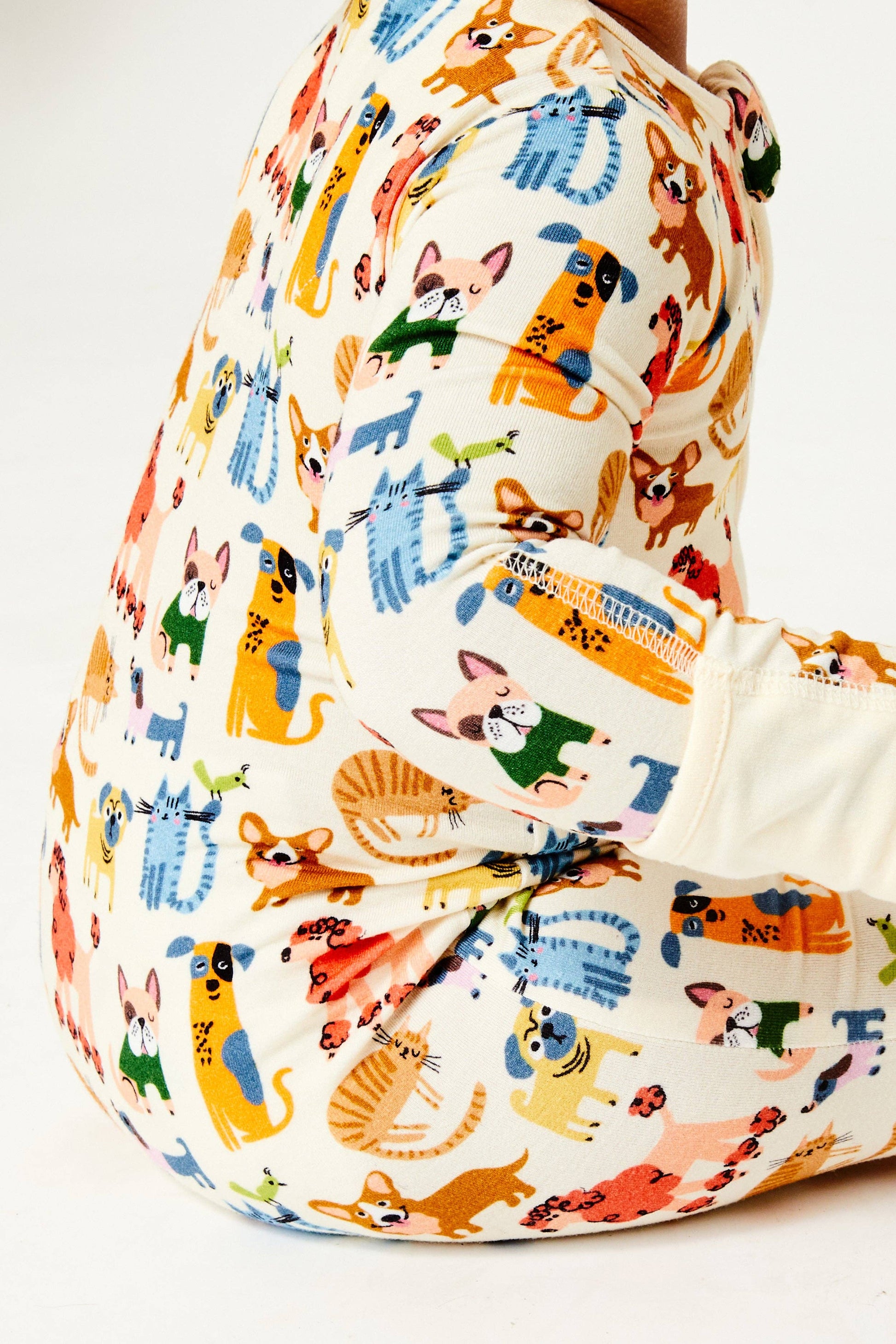 Soft & Stretchy Zipper Footie - Cats + Dogs: 3-6M