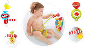 Direct the water flow into the activity station causing a chain reaction that includes funneling, spinning, and spraying, turning the tub into an ocean wonderland.