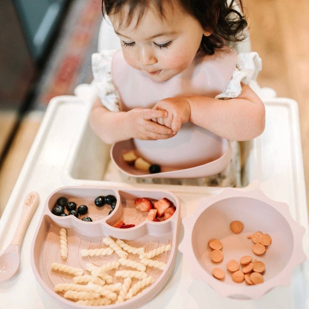 Let our 'You Are My Sunshine' collection brighten up your mealtime, whether you're into neutrals or colors! Our collection features a range of silicone toddler mealtime essentials, including a suction rainbow plate and a suction sunshine bowl. Made from high-quality silicone, these mealtime companions are not only adorable but also practical, ensuring that mealtime stays as mess-free as possible and enjoyable for both parents and little ones. Say goodbye to flying plates and bowls – our suction technology keeps them securely in place on the table, making mealtime a breeze. Choose from our vibrant color options or go for the soothing neutrals, and let our 'You Are My Sunshine' collection bring warmth, joy, and organization to your little one's mealtime routine.